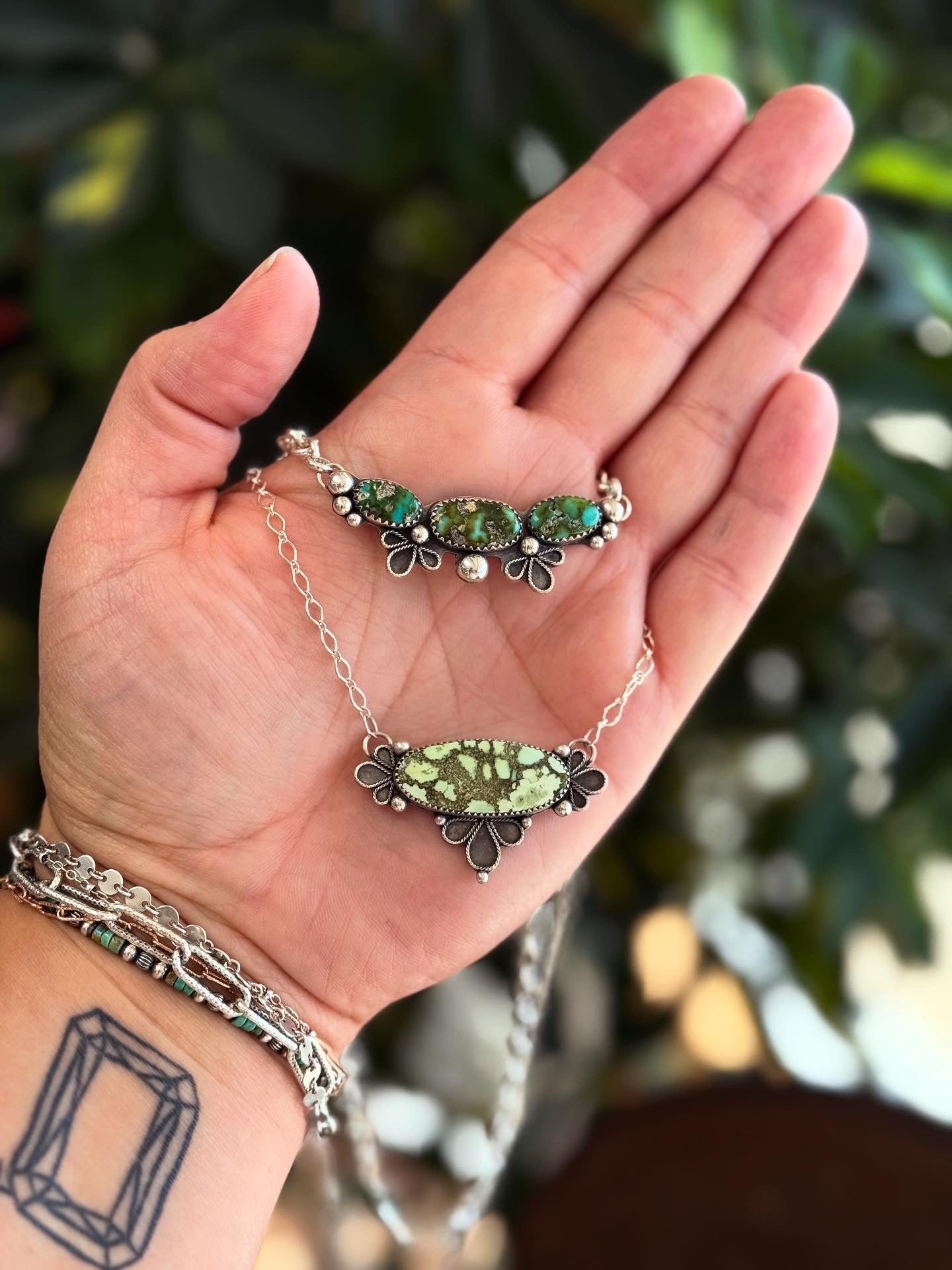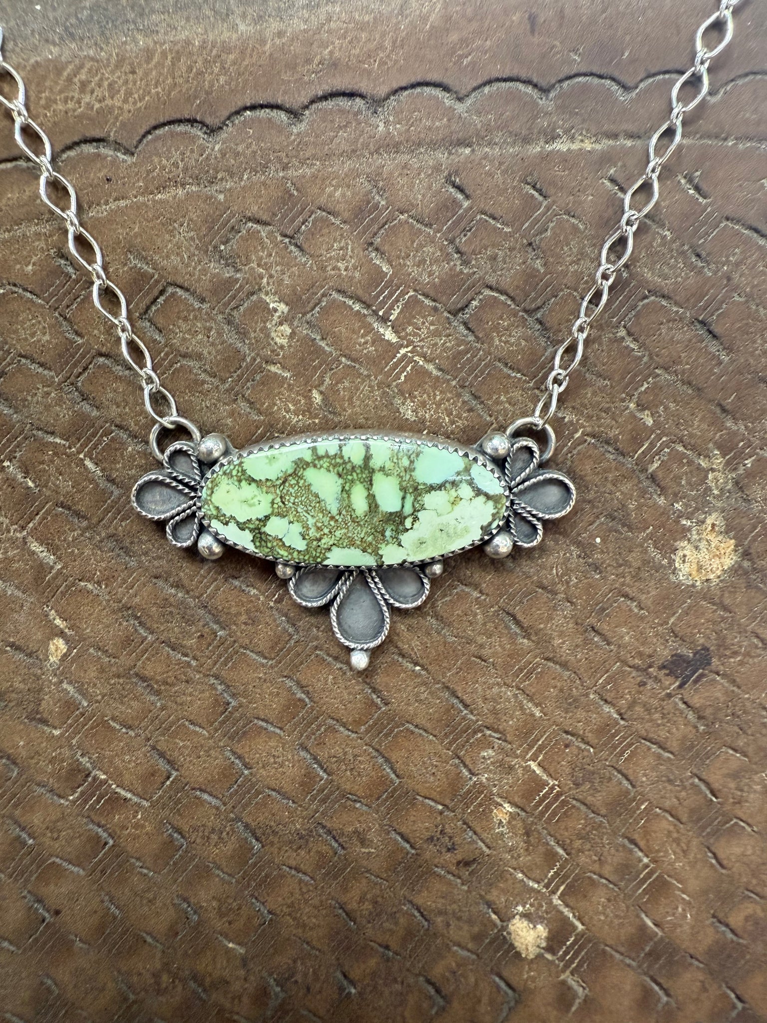 Sterling silver and Damele Variscite necklace center set on 18” chain